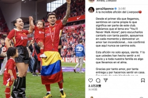 体育资讯6月2日讯 利物浦前锋迪亚斯携女友和小孩一起参加球队冠军庆典,其女友被利物浦球迷的激情深深震撼。迪亚斯女友通过社交媒体感叹红军球迷无愧世界上最棒的球迷。