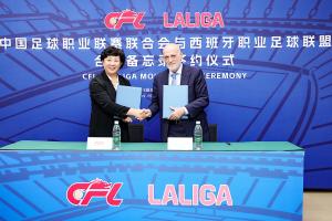 28日,中足联与西甲联盟达成重要的战略合作关系,共同签署了为期四年的合作备忘录,提出未来将在职业联赛体系建设、青训体系优化等领域展开全方位的合作。双方将在顶层设计共建、人才交流互促和青少年足球根基筑牢三个方面持续发力,将合作内容转化为具体的成果,推动中国职业联赛的长远可持续发展。