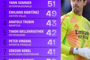 体育资讯6月2日讯 2024-25赛季的欧冠已经落下帷幕,巴黎圣日耳曼以5-0的比分大胜国米夺冠。Squawka统计出了欧冠多项数据排名情况,皇马门将库尔图瓦以52次扑救位居扑救榜榜首。