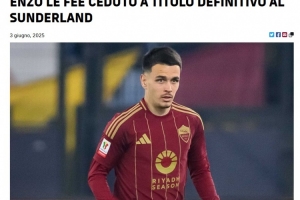 罗马官方写道:“罗马官方宣布,法国中场勒费已永久转会至桑德兰。勒费于2024年夏天加盟首都球队罗马,为罗马效力半个赛季期间共出场10次。2025年1月10日,他此前以租借形式加盟桑德兰直至赛季结束,在下半赛季他帮助球队成功完成升级。勒费,祝你在英超的全新冒险中好运!”
