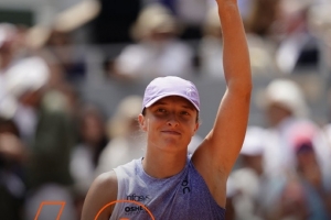 斯瓦泰克在法网1/4决赛2-1击败莱巴金娜晋级半决赛,作为法网三连冠的卫冕冠军,她在42场法网女单正赛取得了40场胜利。