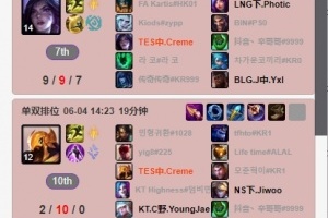 体育资讯6月4日讯 根据韩服排位统计小程序显示,TES中单Creme今日韩服遭遇一波五连败,两局沙皇战绩堪忧。
