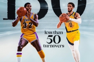 据统计,今年季后赛至今哈利伯顿已送出156次助攻,仅有31次失误。为NBA季后赛历史上(联盟自1978年开始统计失误数据)第二位在总决赛前送出至少150次助攻且失误不到50次的球员,比肩魔术师约翰逊。