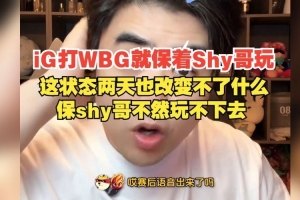 我给IG出个主意如果这样的状态,反正马上就要打WBG了,两天你也改变不了什么东西,你就保着shy哥玩,你下一把开始就给shy哥玩,杰斯,狼母,格温这种英雄你就保着shy哥玩,不然玩不下去。