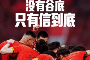 国足装备赞助商NIKE在官博发布了助阵国足的文案,主题为:“没有谷底,只有信到底。”
