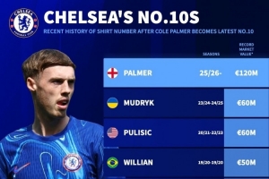 体育资讯6月5日讯 切尔西官方宣布,帕尔默新赛季将身穿10号球衣。