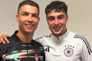 体育资讯6月5日讯 今天凌晨,德国在欧国联半决赛1-2不敌葡萄牙遭淘汰,德国国脚帕夫洛维奇得到了与C罗合影的机会。