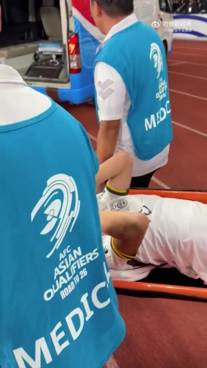 赛后,胡荷韬被担架抬下伤势不明,随后被救护车拉走。