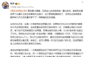 体育资讯06月06日讯 北京时间21:45,世预赛亚洲区第三阶段C组第9轮,国足0-1不敌印尼。赛后媒体人陆洋对国足未来进行展望。
