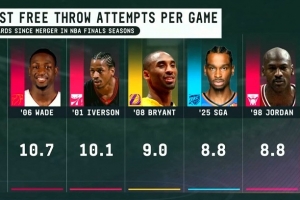 1998年 乔丹—场均罚8.8 次