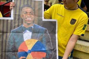 厄瓜多尔球迷举起了沙滩球、还P了维尼修斯捧起沙滩球的图嘲讽维尼修斯拿金球。