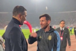 本场比赛开始之前,梅西与前智利国门、巴萨老队友布拉沃见面,两人在场边聊天并拥抱。