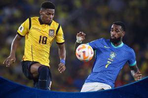 体育资讯06月06日讯 南美世预赛第15轮,厄瓜多尔0-0战平巴西,现积24分排名南美第2。