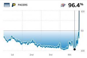 本场比赛,雷霆最大领先15分,取胜概率一度高达96.4%!但最终还是被哈利的魔法击败。