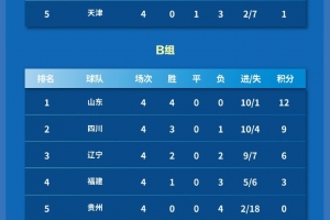 B组山东一枝独秀,贵州小组垫底