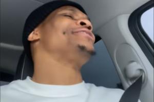 体育资讯06月06日讯 今日掘金后卫拉塞尔-威斯布鲁克更新了社交媒体,晒出自己在车内放声高歌的片段。