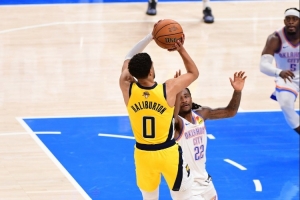 比赛最后时刻,哈利伯顿投进了绝杀中距离,完成了15分大逆转。