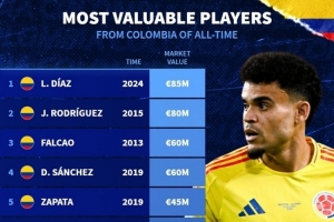 哥伦比亚球员德转历史身价排名: