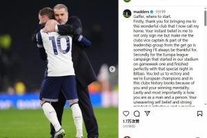 麦迪逊写道:“老大,千言万语不知从何说起。首先感谢您将我带到这个如今被我称之为家的伟大俱乐部。从签约那一刻起就赋予我副队长职责、让我进入领导团队的这份信任,我将永远铭记。”