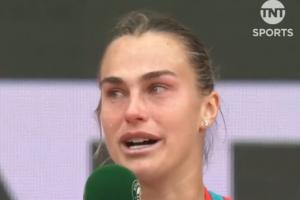 赛后仪式,萨巴伦卡在致辞时忍不住落泪,祝贺了高芙夺得第二座大满贯。