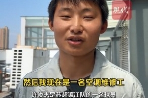 体育资讯6月8日讯 据《现代快报》报道,苏超镇江队的球员许俊杰,现在的身份是一名空调维修工。已经退役12年的他,曾是省队的主力球员并参加过全运会。