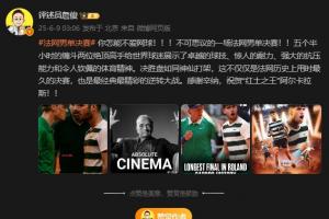 评述员詹俊做出点评:你怎能不爱网球!!!不可思议的一场法网男单决赛!!五个半小时的缠斗两位绝顶高手给世界球迷展示了卓越的球技、惊人的耐力、强大的抗压能力和令人钦佩的体育精神。决胜盘如同神仙打架,这不仅仅是法网历史上用时最久的决赛,也是最经典最精彩的逆转大战。感谢辛纳,祝贺“红土之王”阿尔卡拉斯!!