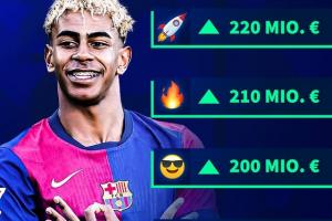 德国转会市场公布了4个可能的结果,分别是1.9亿欧元、2亿欧元、2.1亿欧元以及2.2亿欧元,而亚马尔当前身价为1.8亿欧元,也就是说西班牙边锋的身价肯定会出现上涨。