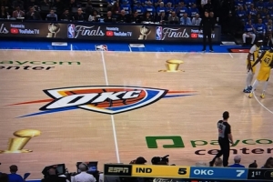 体育资讯6月9日讯 今日上午步行者和雷霆总决赛G2正在展开。为了应对G1比赛后大量关于恢复冠军奖杯图案的讨论,联盟决定在G2设置了奥布莱恩杯的投影。