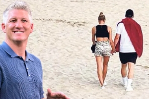 体育资讯06月09日讯 图片报当地时间6月6日报道,40岁施魏因施泰格被拍到在沙滩上与一名女子亲吻。