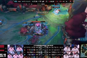 第四局比赛,AL全程遭碾压,AL上野辅三人合砍1-25-6,圣枪哥0-7,塔赞1-9,辅助Kael 0-9。