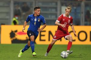 2021年6月4日为意大利上演首秀以来,拉斯帕多里打进9球是队内在此期间的射手王。