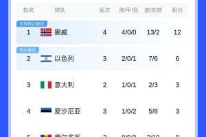 挪威豪取四连胜继续领跑I组,意大利取首胜暂排第三。