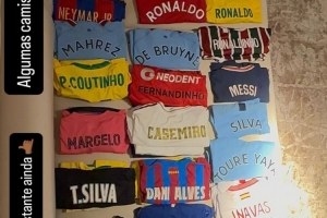 热苏斯在社交媒体上晒出多件自己收藏的球衣,梅西、C罗、内马尔、罗纳尔迪尼奥、维尼修斯、德布劳内、本泽马的球衣在列。
