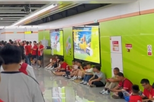 体育资讯6月10日讯 据博主“斯文已逝”透露,由于今天重庆高温,很多准备观看今晚国足对阵巴林比赛的球迷躲进了地铁站。
