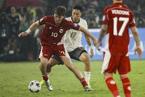 国足替补:1-颜骏凌、12-刘殿座、5-吴少聪、18-韩鹏飞、6-王上源、7-徐皓阳、15-汪士钦、21-杨明洋、13-刘祝润、19-刘诚宇、22-王子铭、23-侯永永