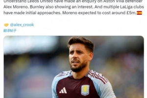 莫雷诺与维拉的合同2026年到期,雅各布斯透露,利兹联询问了这位32岁左后卫的情况,伯恩利也对他感兴趣,多家西甲俱乐部也已进行初步接触,莫雷诺的转会价格预计在500万英镑左右。