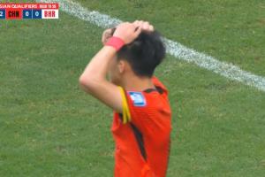 体育资讯06月10日讯 国足vs巴林第30分钟,张玉宁横扫门前,王钰栋点球点推射直接打向看台!