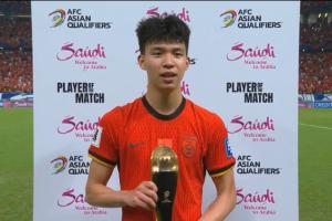 体育资讯06月10日讯 世预赛亚洲区第三阶段C组第10轮,中国男足1-0击败巴林。赛后现场广播宣布,点射打入绝杀球的王钰栋当选全场最佳球员!
