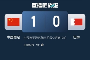 体育资讯6月10日讯 18强赛C组收官战,凭借王钰栋点射破门,中国男足主场1-0击败巴林队,避免小组垫底。