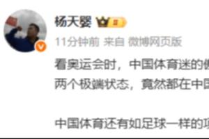 杨天婴:“看奥运会时,中国体育迷的傲视天下,看足球比赛时,中国体育迷的卑微可怜,这两个极端状态,竟然都在中国体育当中集中存在。