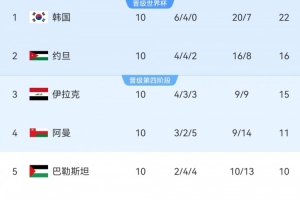 体育资讯6月11日讯 世预赛亚洲区第三阶段B组第十轮,巴勒斯坦与阿曼展开直接对话竞争第四名附加赛资格。