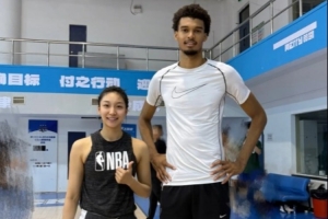 近日,北京女篮球员齐钰晒出自己与文班亚马的合照。