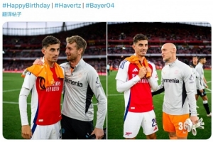勒沃库森社媒写道:“26岁,亲爱的哈弗茨,祝你生日快乐,为你送上最美好的祝福和大大的红黑拥抱!祝你度过美好的一天,享受生日的快乐!”
