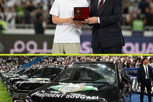 乌兹别克斯坦历史性首次杀入世界杯决赛圈,该国总统向全队球员及教练送上了中国品牌比亚迪电动汽车,每人一辆。