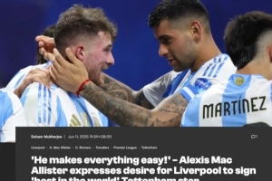 体育资讯6月12日讯 麦卡利斯特没有入选本期阿根廷国家队大名单,他获得了休息。在接受采访时,麦卡对国家队队友、热刺后卫罗梅罗大加赞赏。