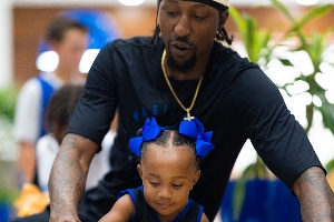 作为361˚篮球品类代言人的波普,在现场也拿出了自己珍藏的PE球鞋,送给了参加派对的小朋友们。