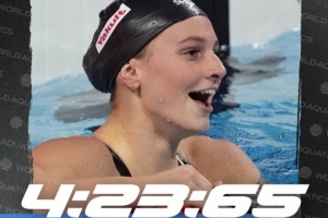 加拿大游泳选拔赛女子400米混合泳比赛中,18岁的麦金托什以4分23秒65打破自己保持的4分24秒38的世界纪录。