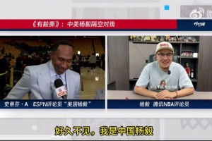 体育资讯6月12日讯 NBA总决赛G3现场,“美国杨毅”A-史密斯和杨毅视频连线。