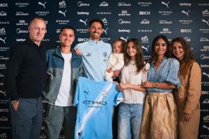 体育资讯06月12日讯 曼城官宣米兰中场赖因德斯加盟,而他的家庭成员也来到签约现场,见证这一重要时刻。