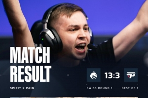 易边再战,手枪局paiN四人走中门被Spirit逐个击破,Spirit完美团灭paiN拿到第10分。次回合paiN纯E在A小被特光,长枪局,sh1ro大狙中门一发带走nqz,paiN打A小被donk用M4双杀送出专武,magixx在B游龙,最终Spirit13-3paiN迎来开门红!